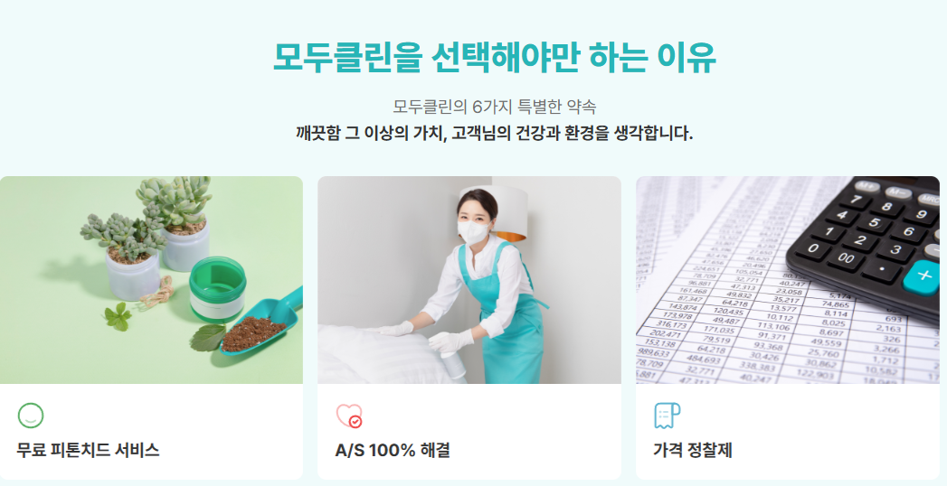 제가 이용했던 모두클린은 상담 단계부터 친절하게 안내해주었고, 청소 범위와 진행 방식에 대해 자세히 설명해줘서 신뢰가 갔습니다. 전국 단위로 진행이 가능하다는 점도 큰 장점이었고, 일정 조율 역시 유연하게 도와줘서 편하게 이용할 수 있었습니다.
